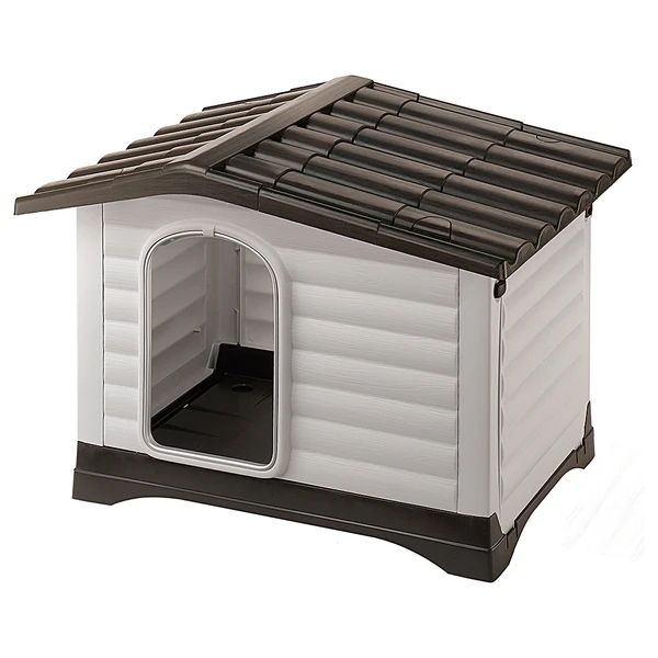 Ferplast Dogvilla Grijs&Bruin – Hondenhok – 111x84x79 cm direct bestellen in onze webshop! Een stoer en handig hondenhok voor buiten Wanneer je een erfhond hebt of wanneer je hond het gewoon heerlijk vindt om zijn tijd buiten door te brengen, kan het handig zijn om een hondenhok buiten te hebben staan. Hier kan je hond in schuilen voor de regen en kou, of gewoon lekker een dutje in doen. De Dogvilla van Ferplast is een praktische kunststof hok voor je viervoeter. Kenmerken van de Dogvilla Dit Ferplast Dogvilla hondenhok is gemaakt van stevig kunststof waardoor deze ideaal is voor buiten. Ook is de zijkant van het hok gemakkelijk te openen, zodat deze gemakkelijk schoon te maken is. Eenmaal geopend kan je de zijkant ook plat neerleggen en kan deze als extra bodem gebruikt worden, zodat je hond hier lekker op kan liggen tijdens de warmere dagen. De Dogvilla heeft een ventilatiesysteem en een afwateringssysteem, zodat je hond altijd droog en comfortabel ligt. De opening van het hok is voorzien van aluminium om te voorkomen dat je hond dit stuk bijt. De Dogvilla is verkrijgbaar in drie maten: * Dogvilla 70 – 73 x 59 x 52 cm * Dogvilla 90 – 88 x 72 x 65 cm * Dogvilla 110 – 111 x 84 x 79 cm . Alle Ferplast voor uw Hond uit voorraad leverbaar!