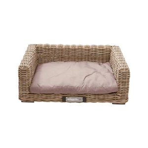 Happy House Rieten Bank is een stijlvolle hondenmand van riet met een teak houten frame en taupe kleurig kussen. Een echt eyecatcher in het interieur!