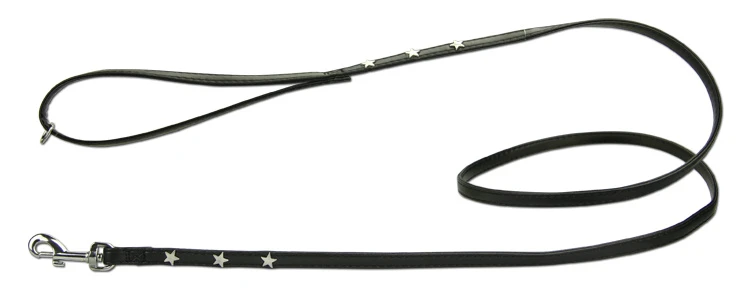 Hondenriem Twinkle Little Star Black/Silver Een mooie zwarte kunstleren hondenriem die prachtig is gedecoreerd met zilverkleurige sterren. Lengte 140 cm. Breedte 10 mm.